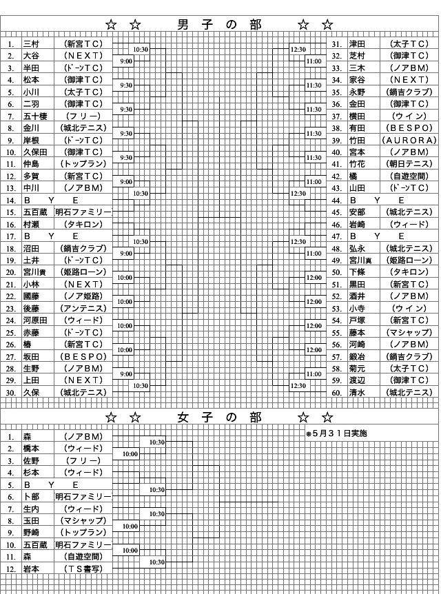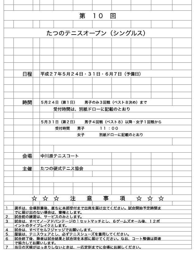 第10回 たつのオープンテニス大会(シングルス)ドロー