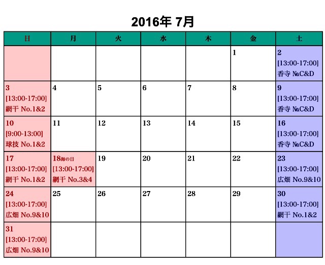 7月の練習日程を公開しました。