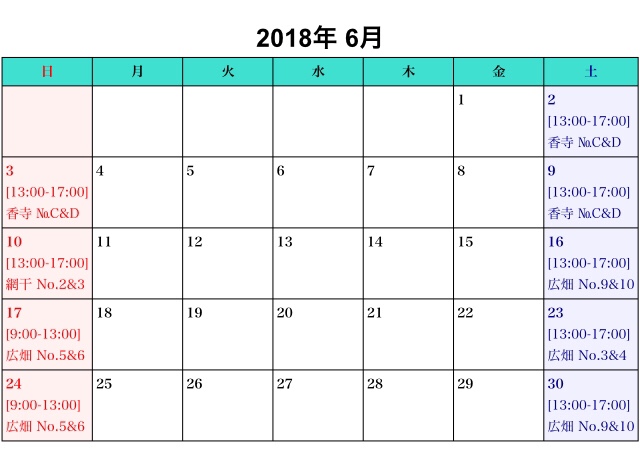 6月度 練習日程公開