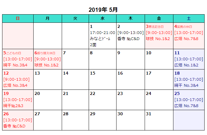5月度 練習日程公開